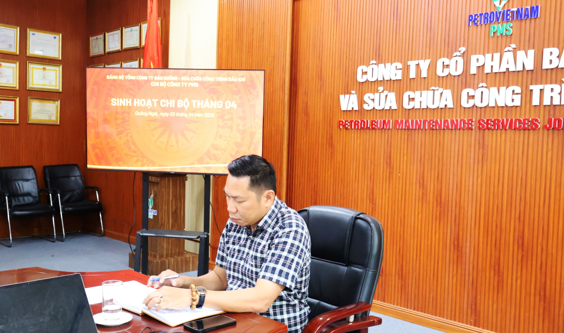 Thực hiện Chỉ thị số 50-CT/TW ngày 23/7/2025 của Ban Bí thư về tiếp tục đổi mới và nâng cao Chất lượng sinh hoạt chi bộ trong giai đoạn mới, Chi bộ Công ty PMS  tổ chức sinh hoạt định kỳ tháng 4/2026 với sự chủ trì của Đồng chí Ngô Tấn Quảng – Bí thư chi bộ và sự tham gia của các đảng viên trong Chi bộ.